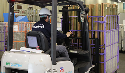 - リーチまたはカウンターフォークリフトを使用して入出庫作業。